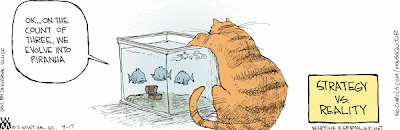 Yeah, don't you wish it was that easy? This is today's "Non Sequitur" strip by Wiley Miller. Basically, the best intentions and hopes in the world aren't going to save you when disaster is reaching its paw into your aquarium.